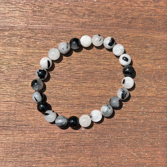 Black Tourmaline Rutile Quartz Bracelet 8 mm - Ultimate Protection & Grounding