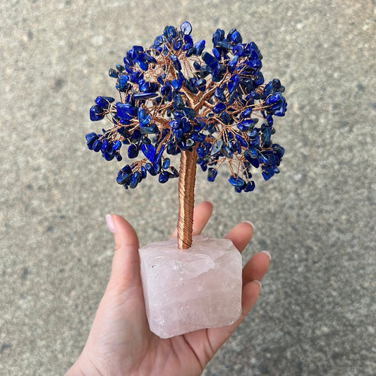 Lapis Lazuli Tree of Life with 414 Crystals Rose Quartz Base