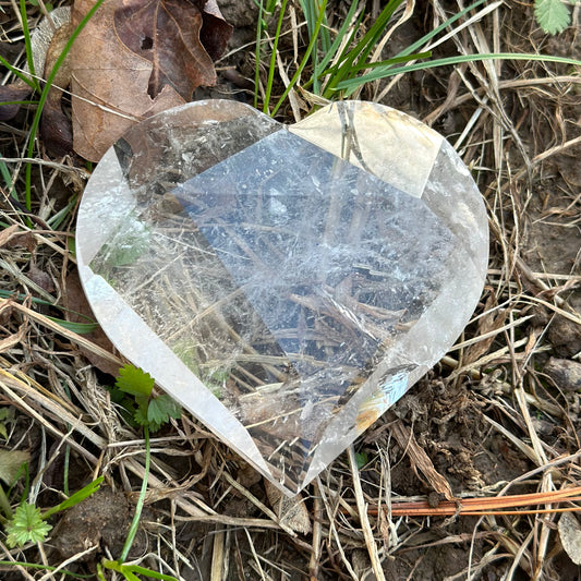 Clear Quartz Faceted Heart 253g - Amplification, Clarity & Deep Healing