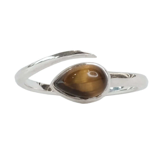 Tiger Eye Pear Shape Adjustable Sterling Silver Ring - Focus, Strength & Inner Vision
