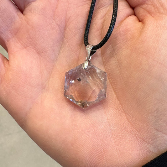 Agate Slice with Clear Quartz Hanging Pendant Necklace