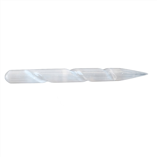 Selenite Spiral Pen Wand Massage Stick - Clarity and Purification