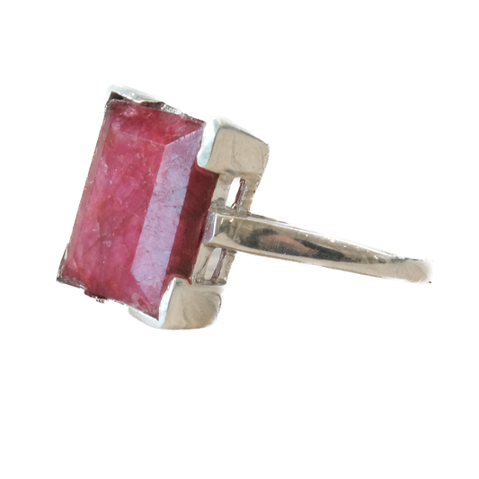 Ruby Rectangle Sterling Silver Ring Size 8 - Vitality, Courage & Inner Fire