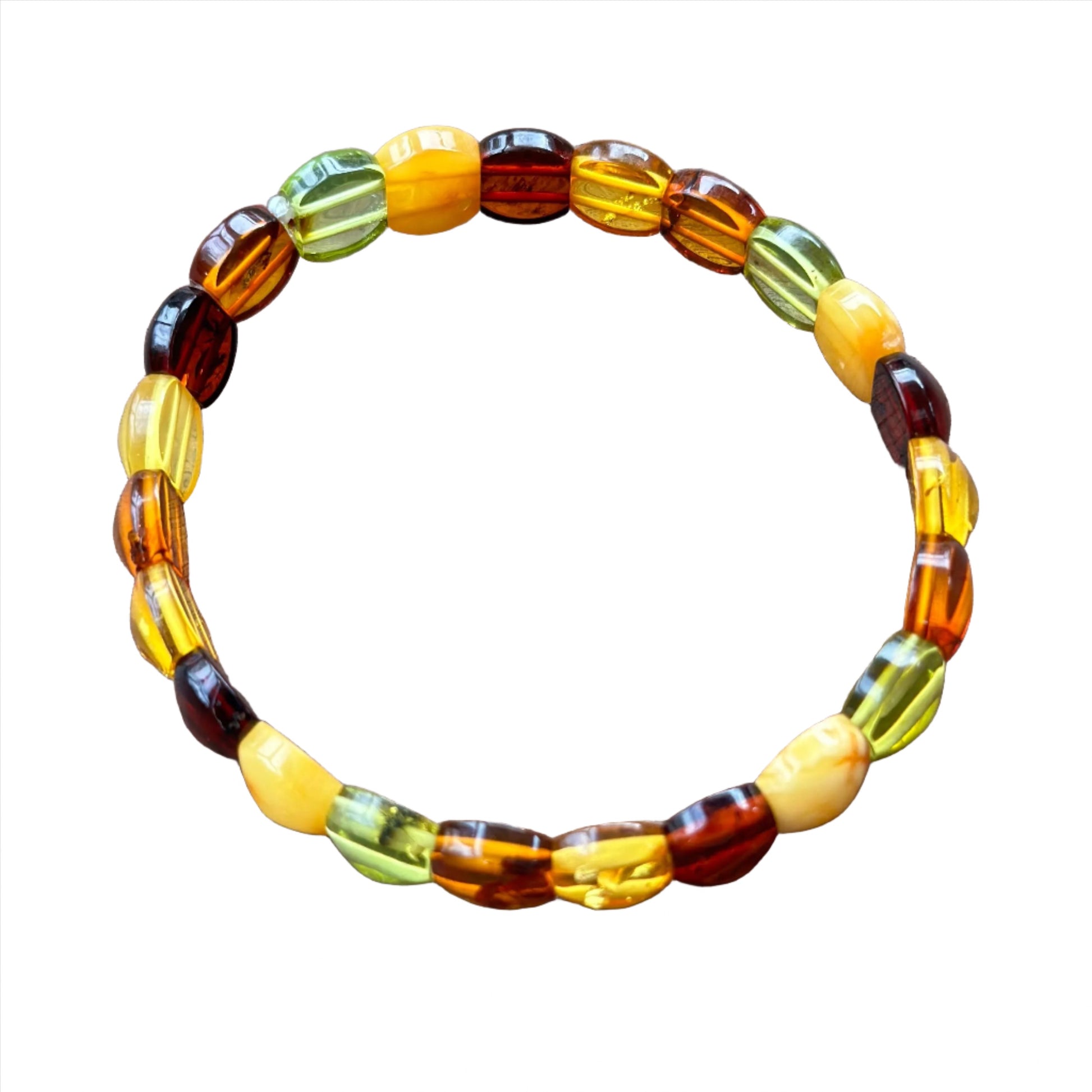 Amber Tricolor Oval Bead Stretch Bracelet Adult Size
