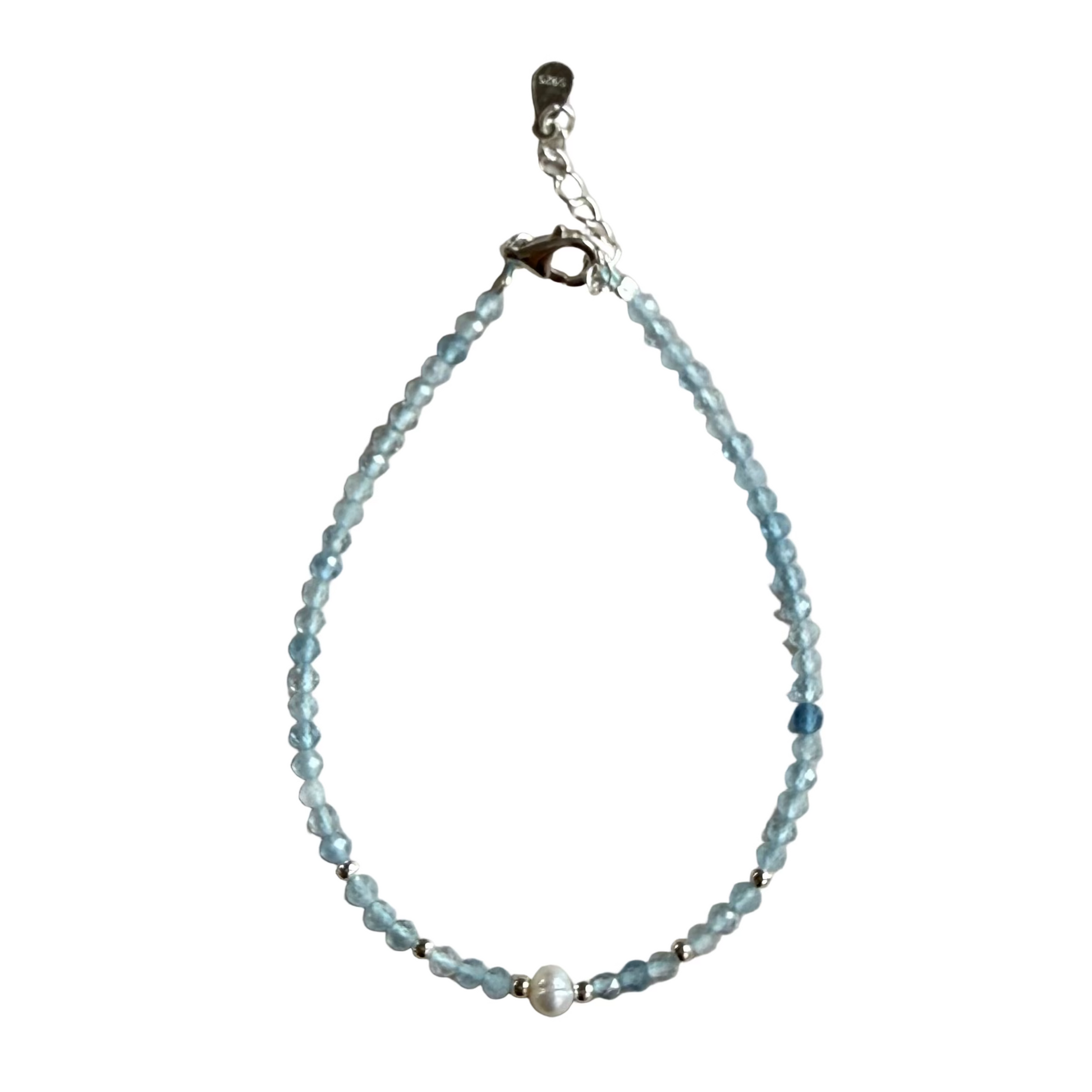 Aquamarine 2mm Faceted Stone Bead with 3-4 mm Fresh Water Pearl Bracelet