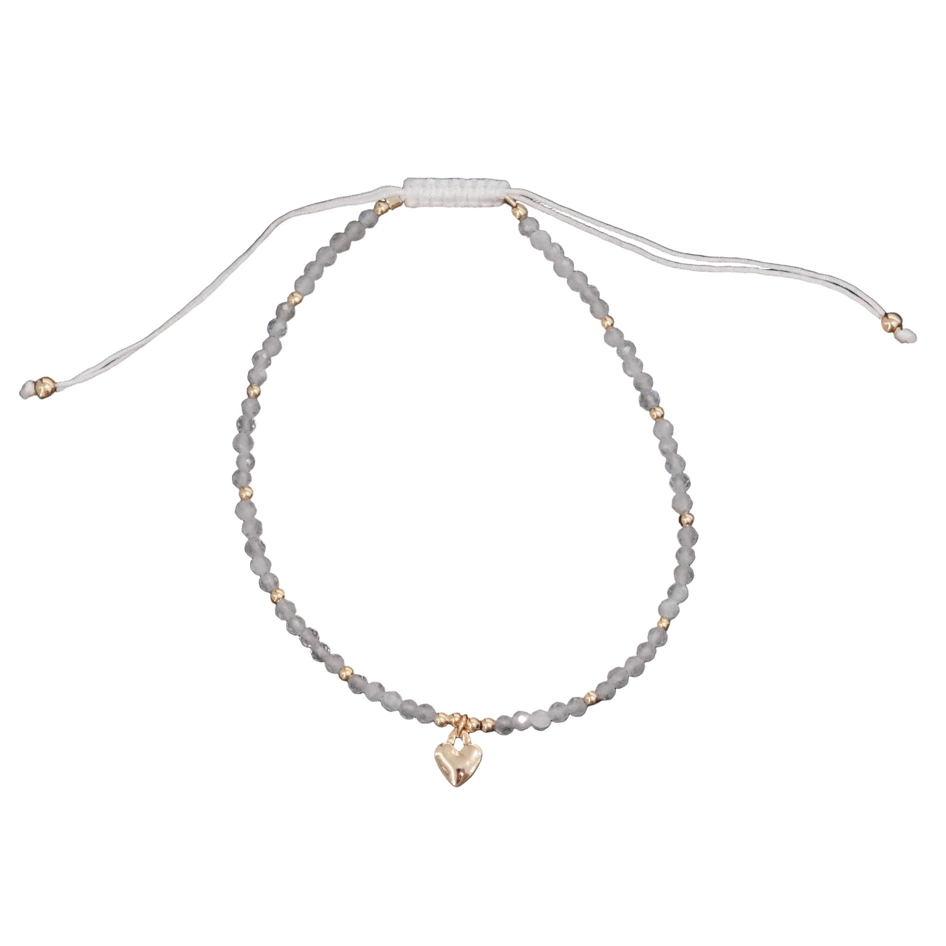 Moonstone Faceted Stone Bead Bracelet with Heart Charm