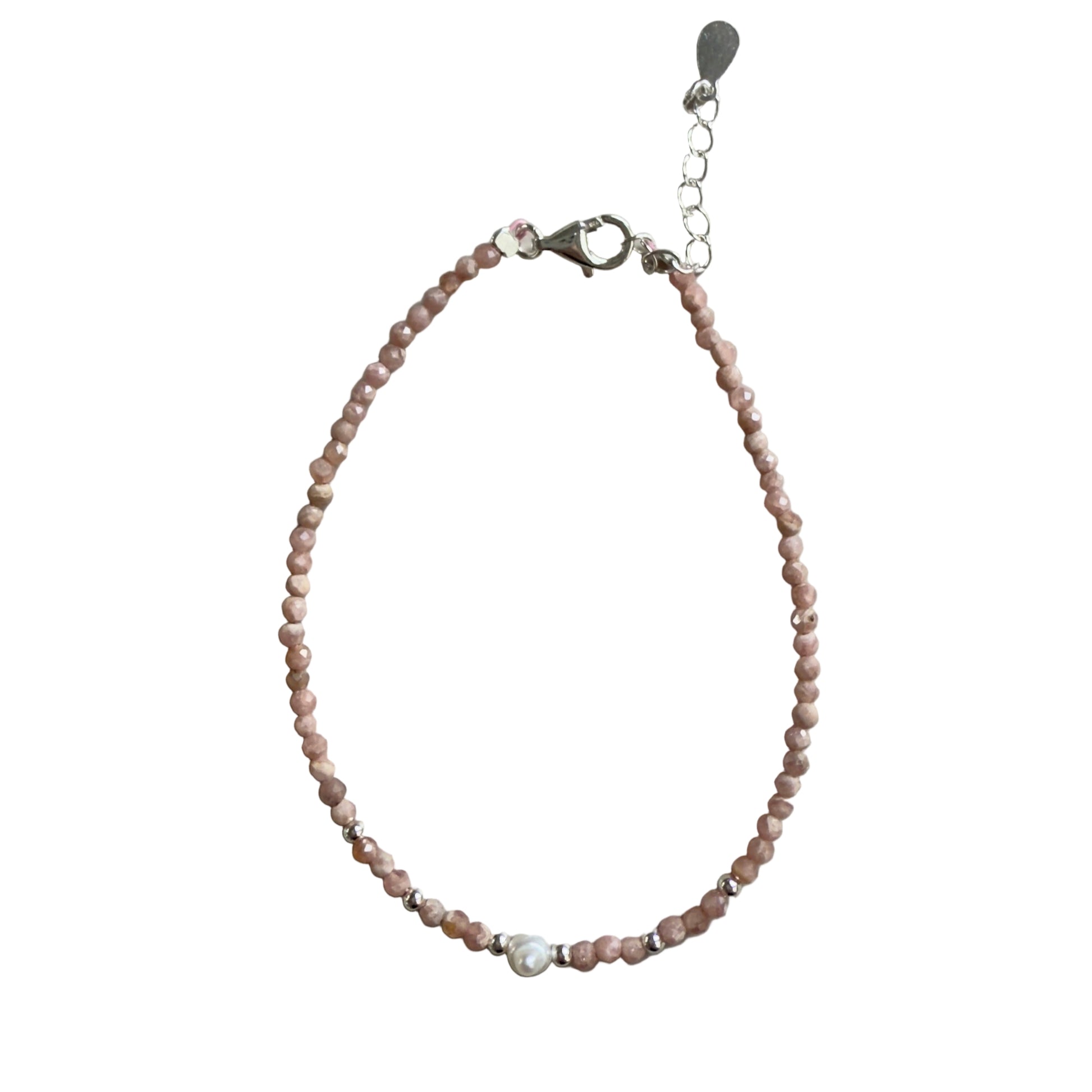 Rhodochrosite 2mm Faceted Stone Bead with 3-4 mm Fresh Water Pearl Bracelet - Deep Heart Healing & Emotional Breath