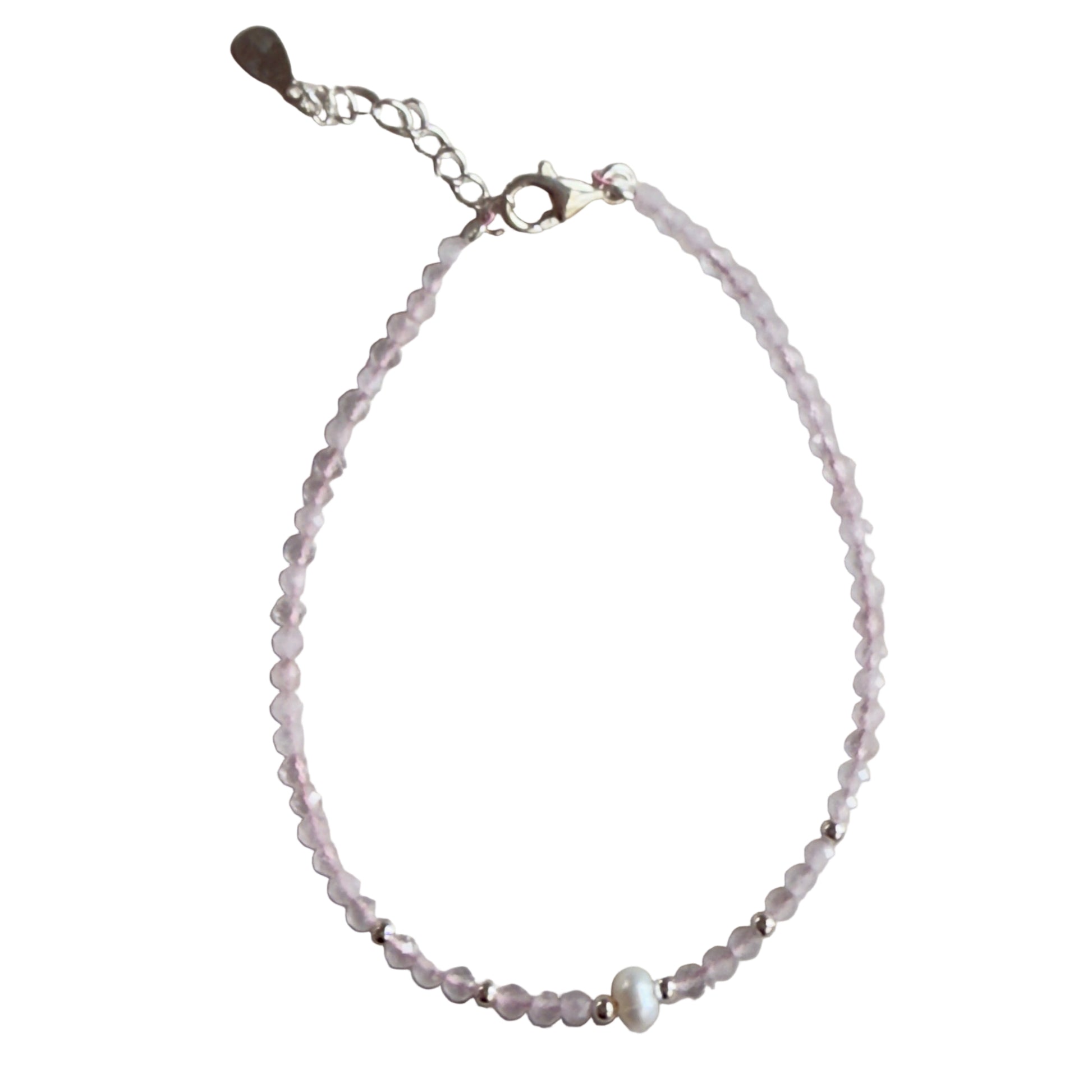Rose Quartz 2mm Faceted Stone Bead with 3-4 mm Fresh Water Pearl Bracelet - Love, Healing & Inner Peace