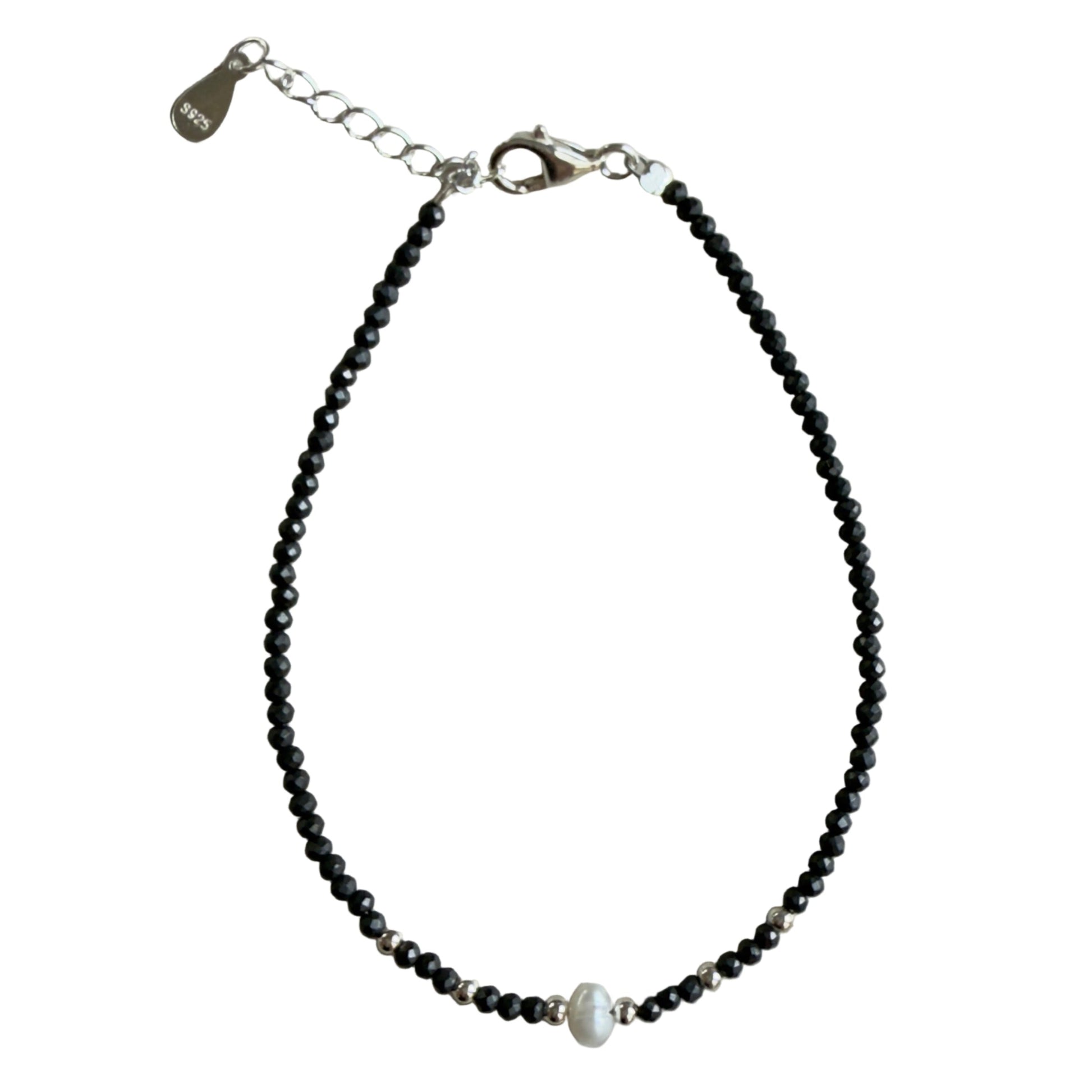 Shungite 2mm Faceted Stone Bead with 3-4 mm Fresh Water Pearl Bracelet - Purify, Protect & Recharge